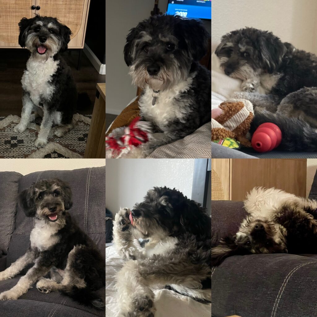 Meet Stanley (Stan the man, side eye Stan)! Although initially thought to be a schnoodle upon rescue, DNA testing revealed he’s actually 50% Pomeranian, 10% Lhasa Apso, and 40% Poodle, 0% schnoodle. Stanley is incredibly treat-driven, enjoys leisurely walks, snuggling, playing with stuffies, and isn’t shy about expressing himself vocally.